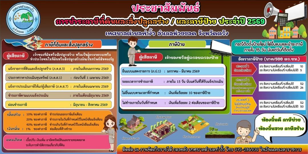 ประชาสัมพันธ์การจัดเก็บภาษีที่ดินและสิ่งปลูกสร้าง , ภาษีป้าย ประจำปี 2569