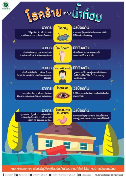 ประชาสัมพันธ์ แนวทางการป้องกันและระงับโรคติดต่อในช่วงการฟื้นฟูหลังจากพ้นสถานการณ์อุทกภัย(น้ำท่วม)