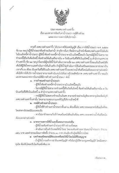 ประชาสัมพันธ์ แนวทางการจัดเก็บค่าน้ำประปา กรณีค้างชำระและมาตรการงดการให้บริการน้ำ