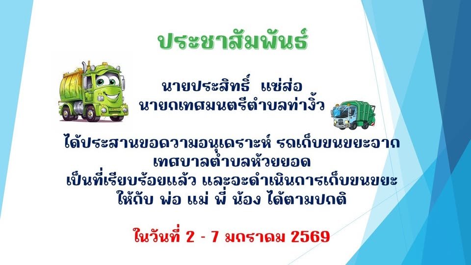 ประชาสัมพันธ์ เทศบาลจะดำเนินการเก็บขนขยะ ในวันที่ 2 มกราคม 2569
